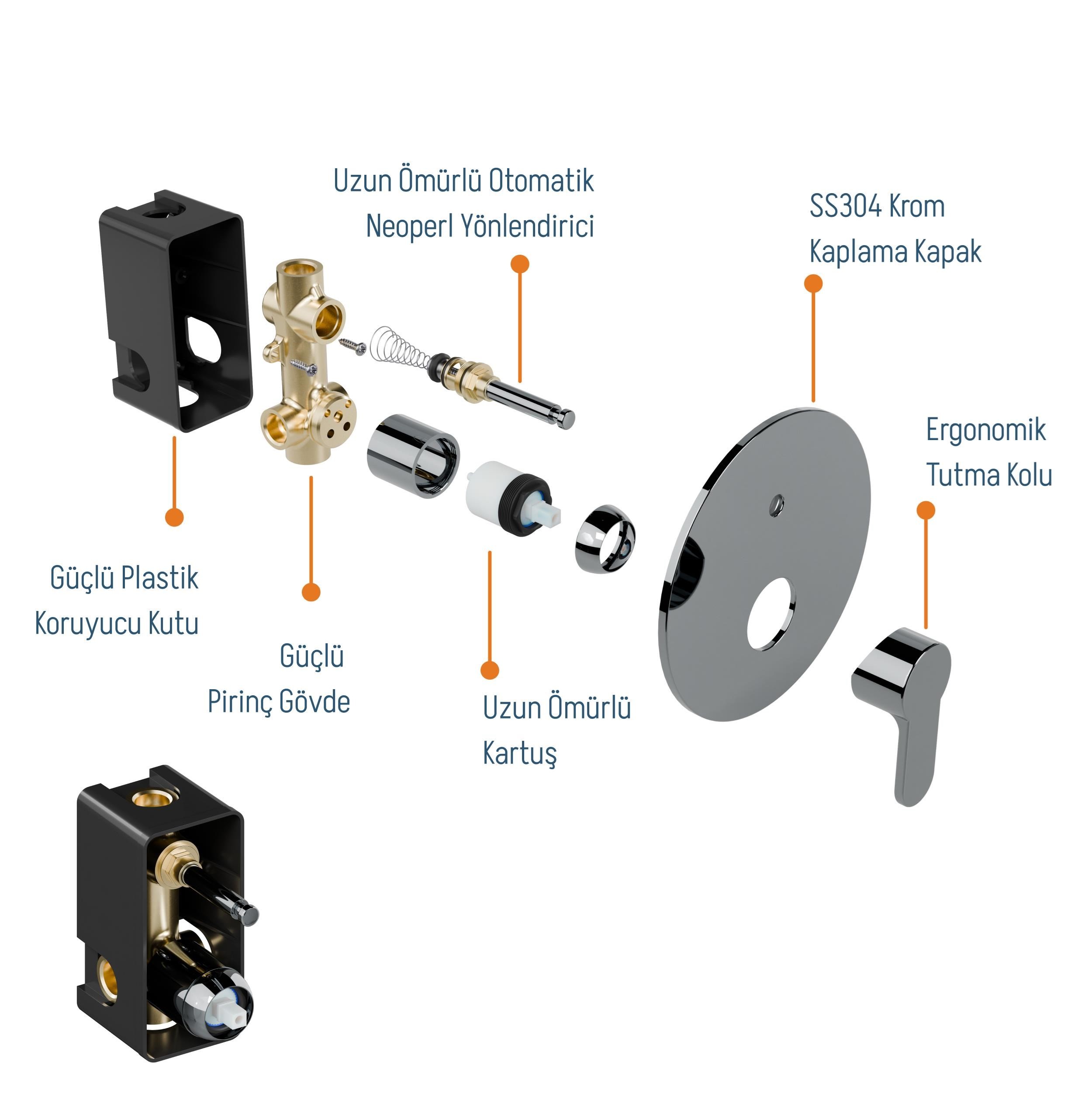 Ürün setinin Prinç parçaları 10 yıl ve duş sistemleri ve plastik parçalar 2 yıl garantilidir.