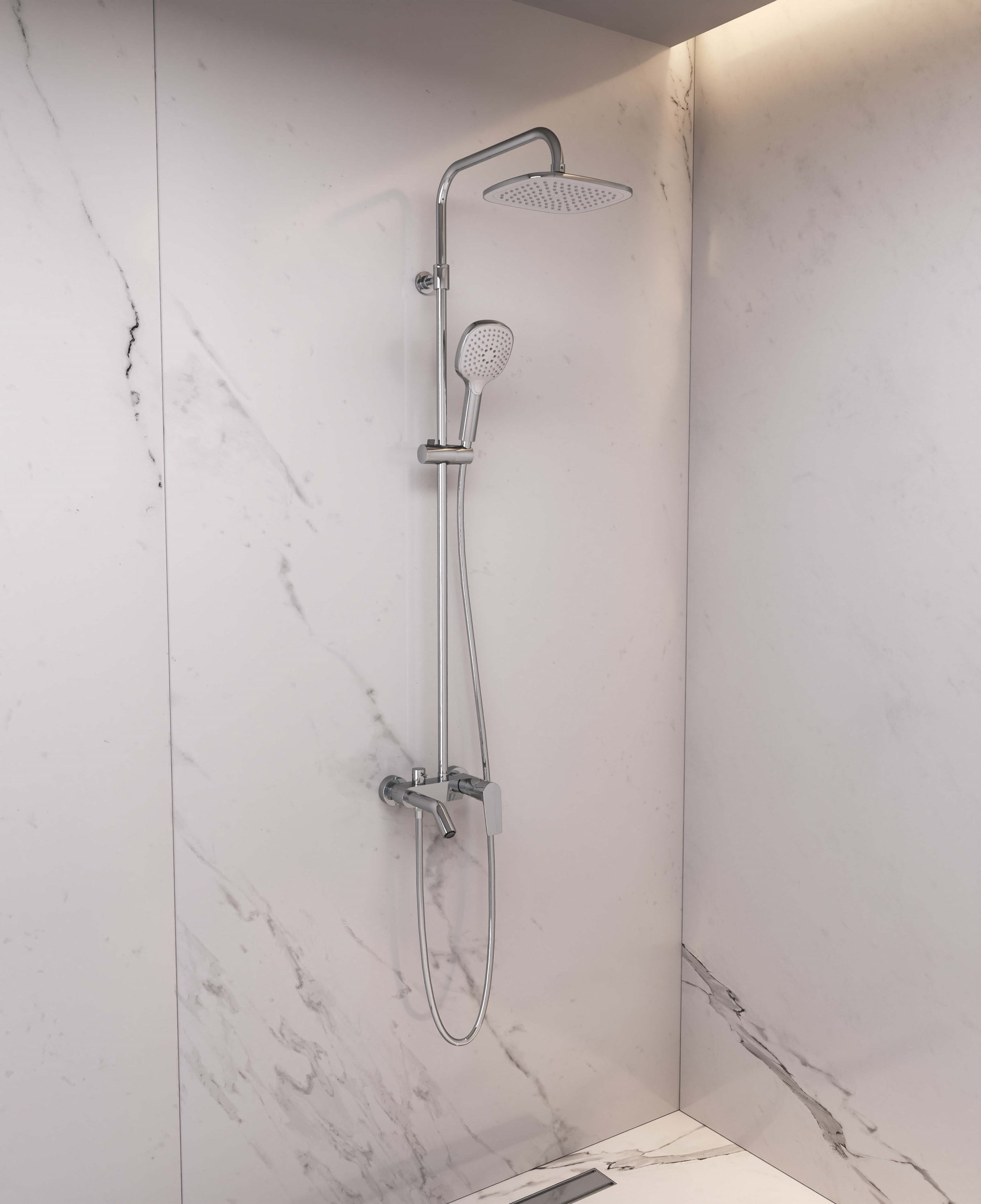 Tek set içerisinde; batarya, tepe duşu, el duşu, ayarlanabilir kolon, hortum ve bağlantı boruları dahil olmak üzere tüm gerekli parçalar eksiksiz olarak sunulmaktadır.