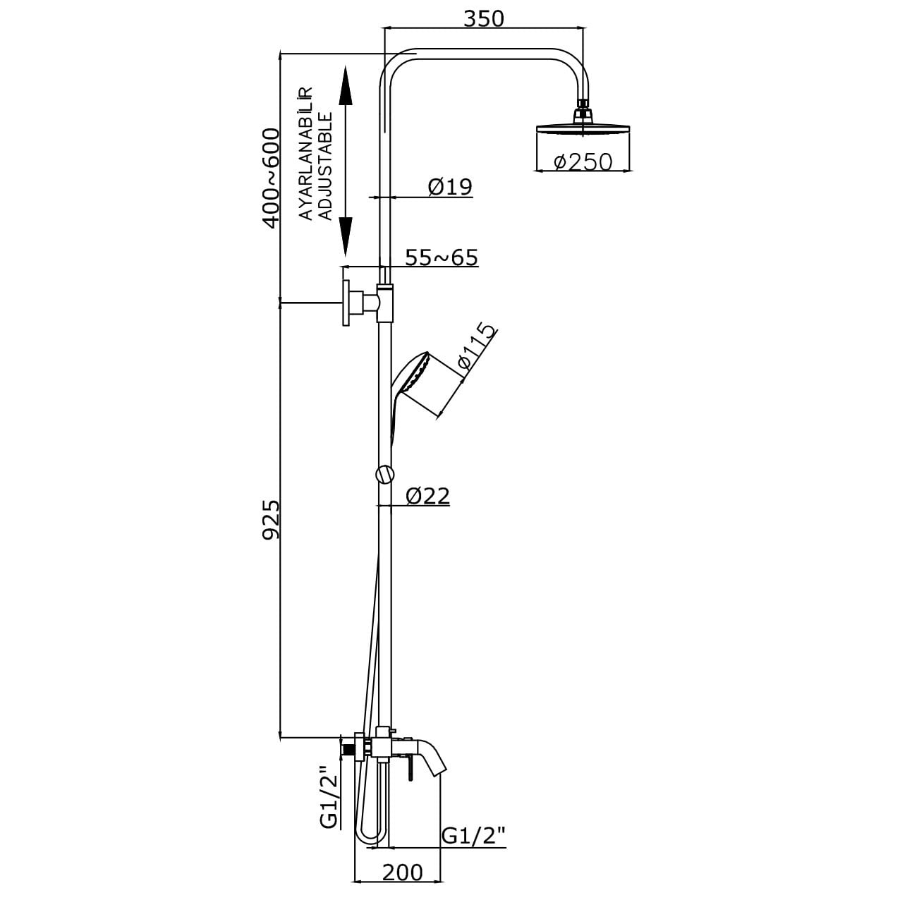 • Yüksekliği Ayarlanabilir Teleskopik Duş Borusu: