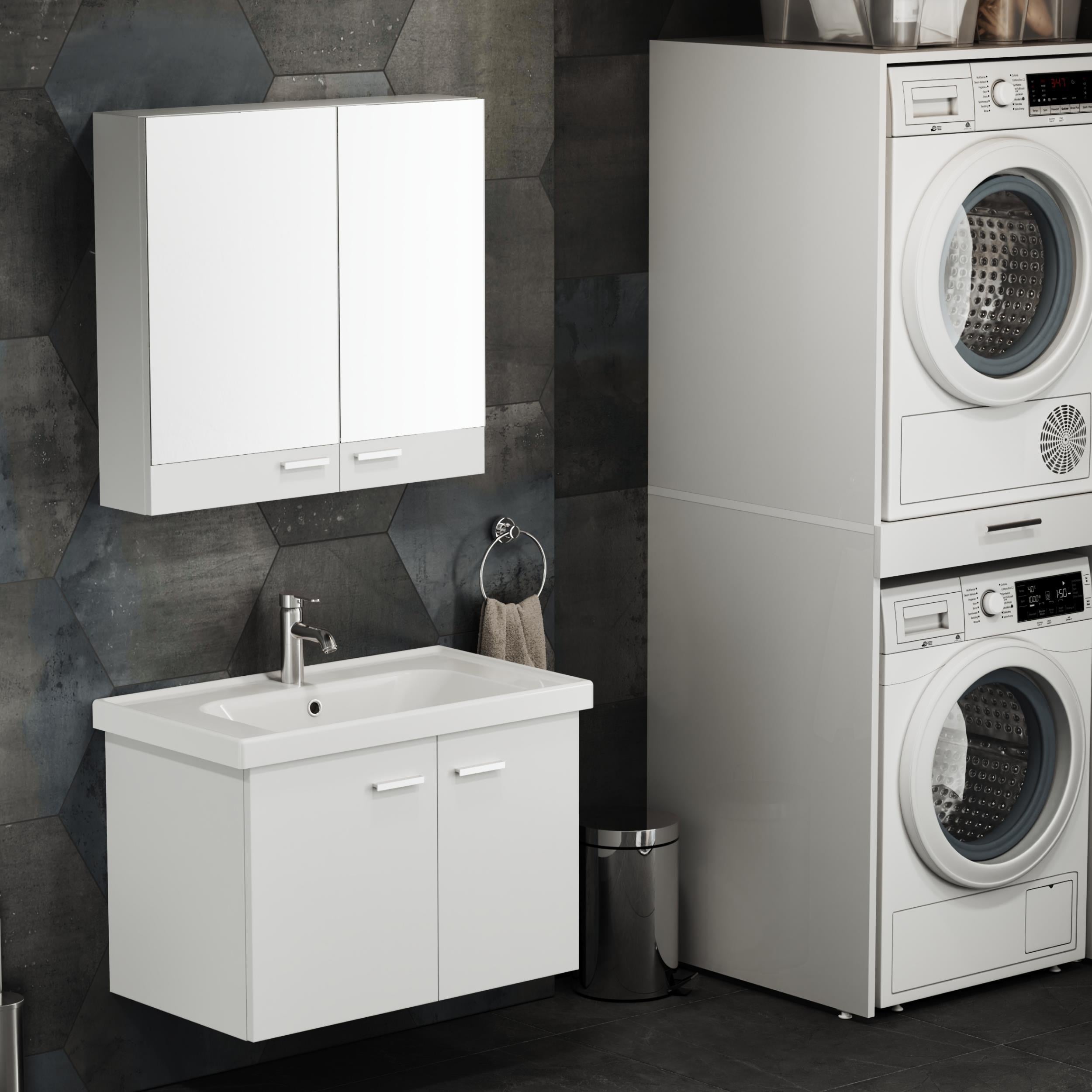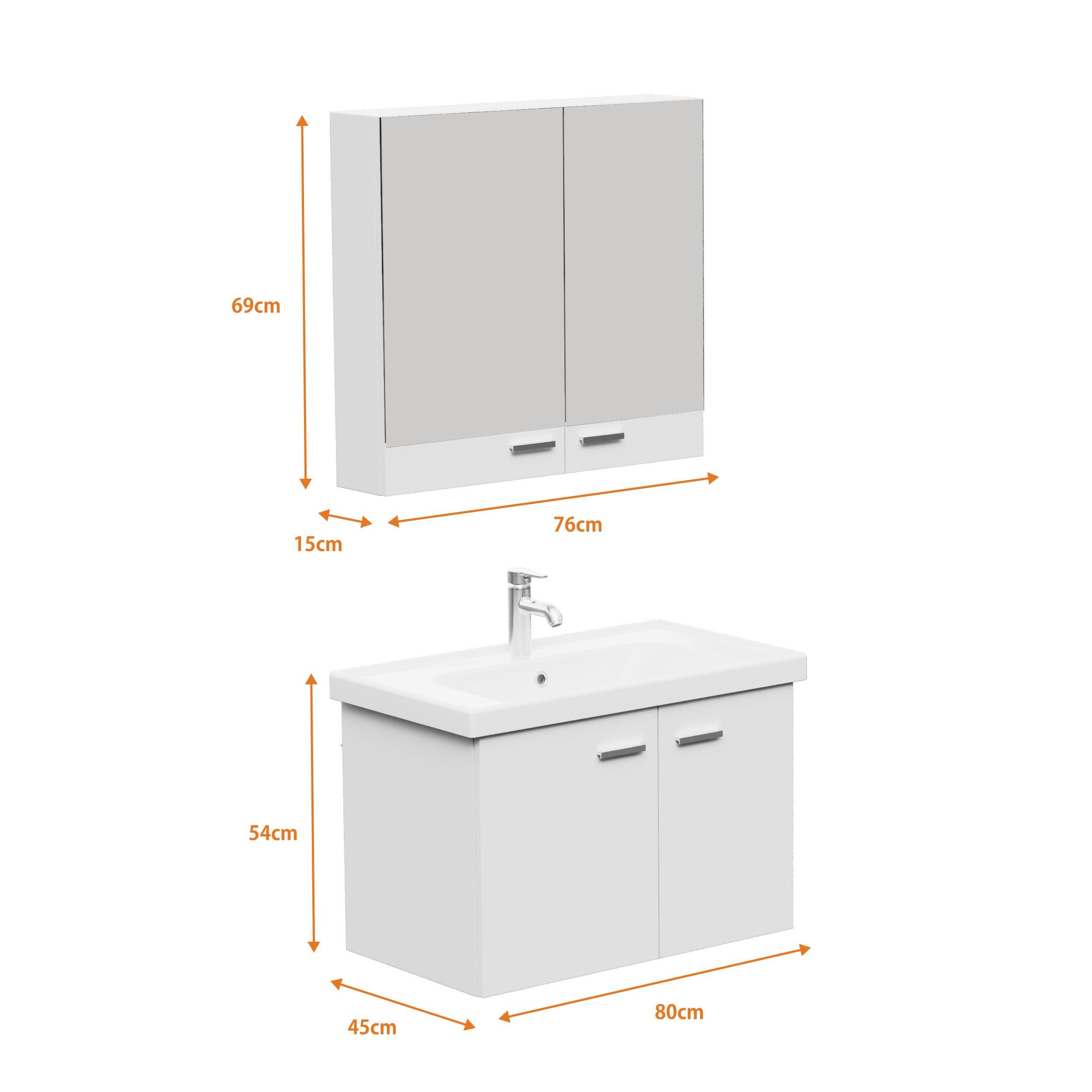 S.50.02.33.03.01 Basic alt ve üst dolap Set 80 cm. Beyaz - 3 parça