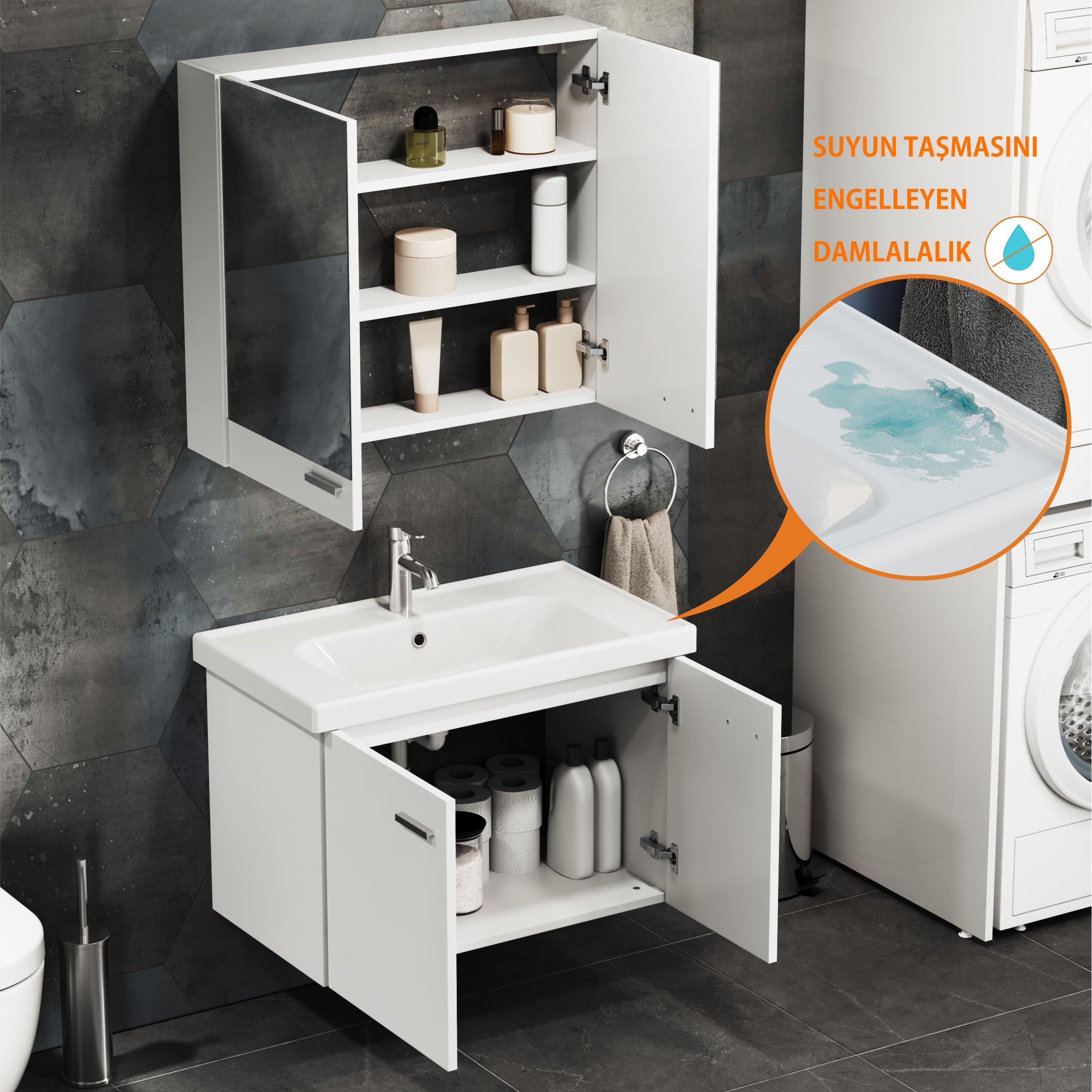 Ürün Modern tasarım, yüksek kalite bakımı kolay yüzey olup birinci sınıf 1.kalite MDF-Lam’dan imal edilmiş olup Beyaz renklidir. Kenar bantları 0,4 mm pvc olup şık bir görünüm sağlayarak su ve neme karşı tam koruma sağlar.