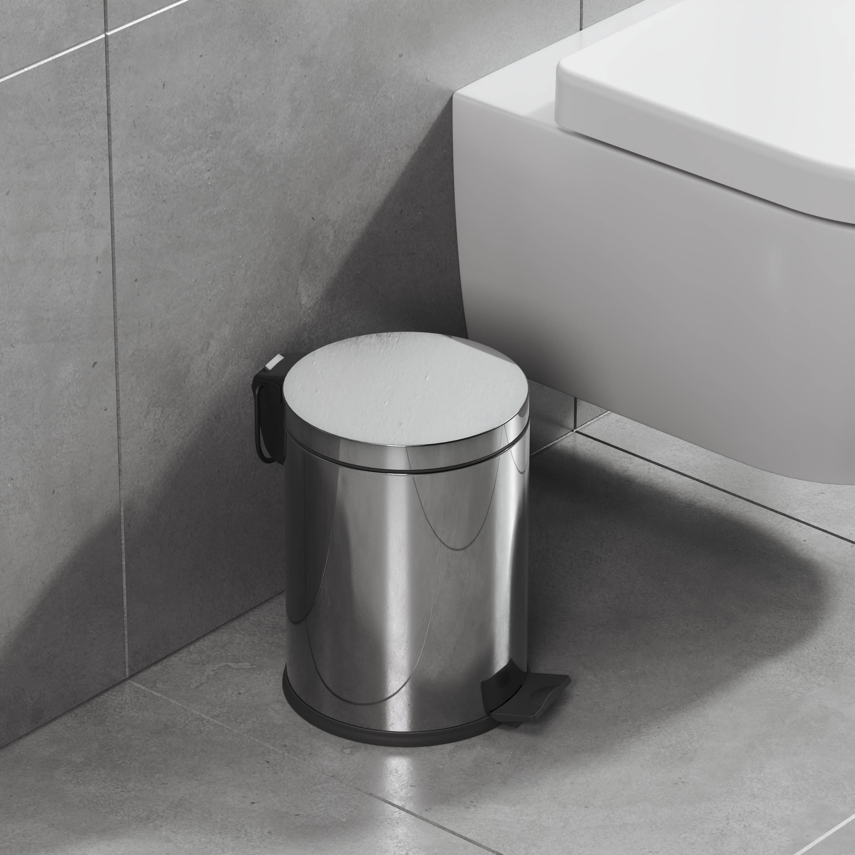Aqua Bagno Basic Pedallı Çöp Kovası – 5 Litre / Parlak Krom / Paslanmaz Çelik