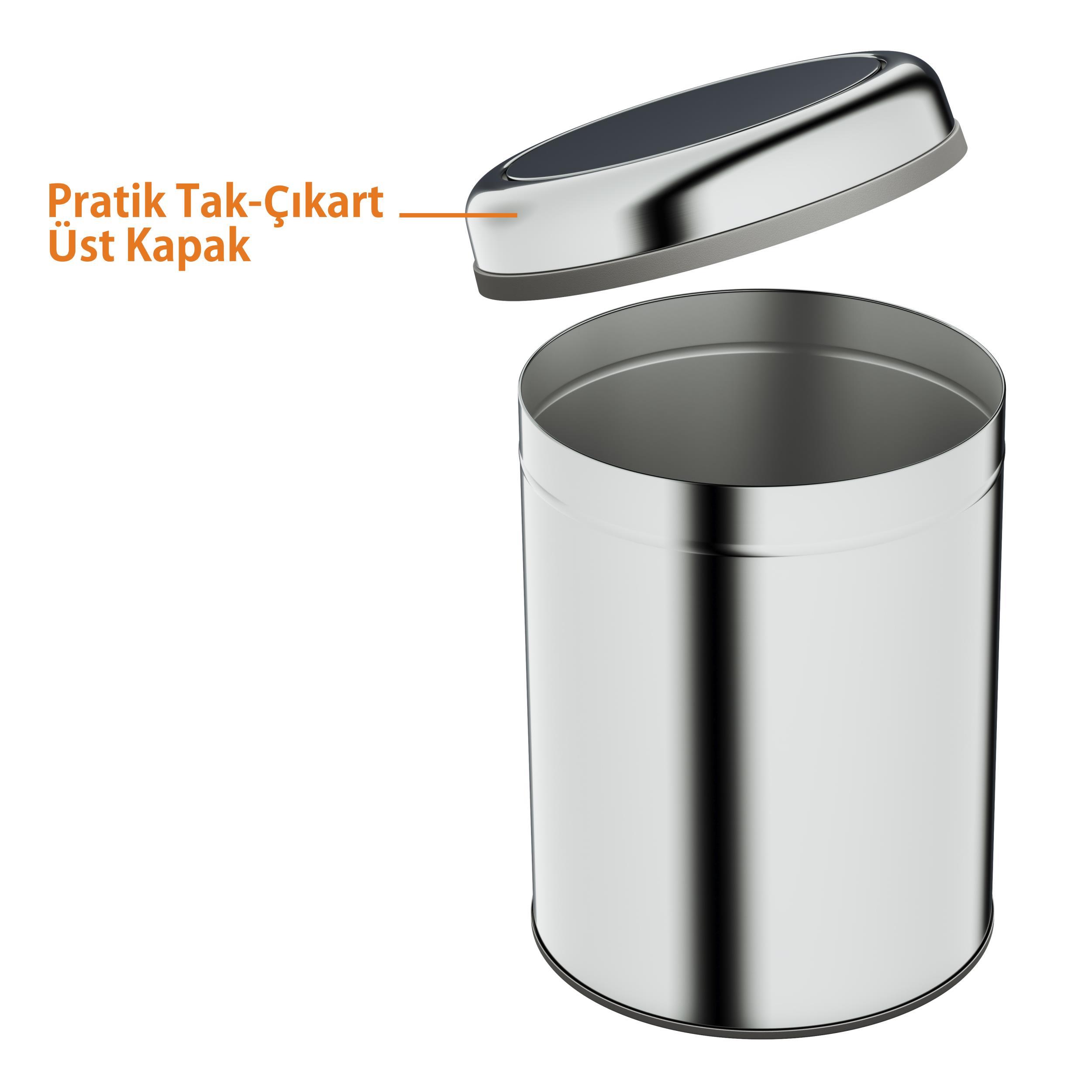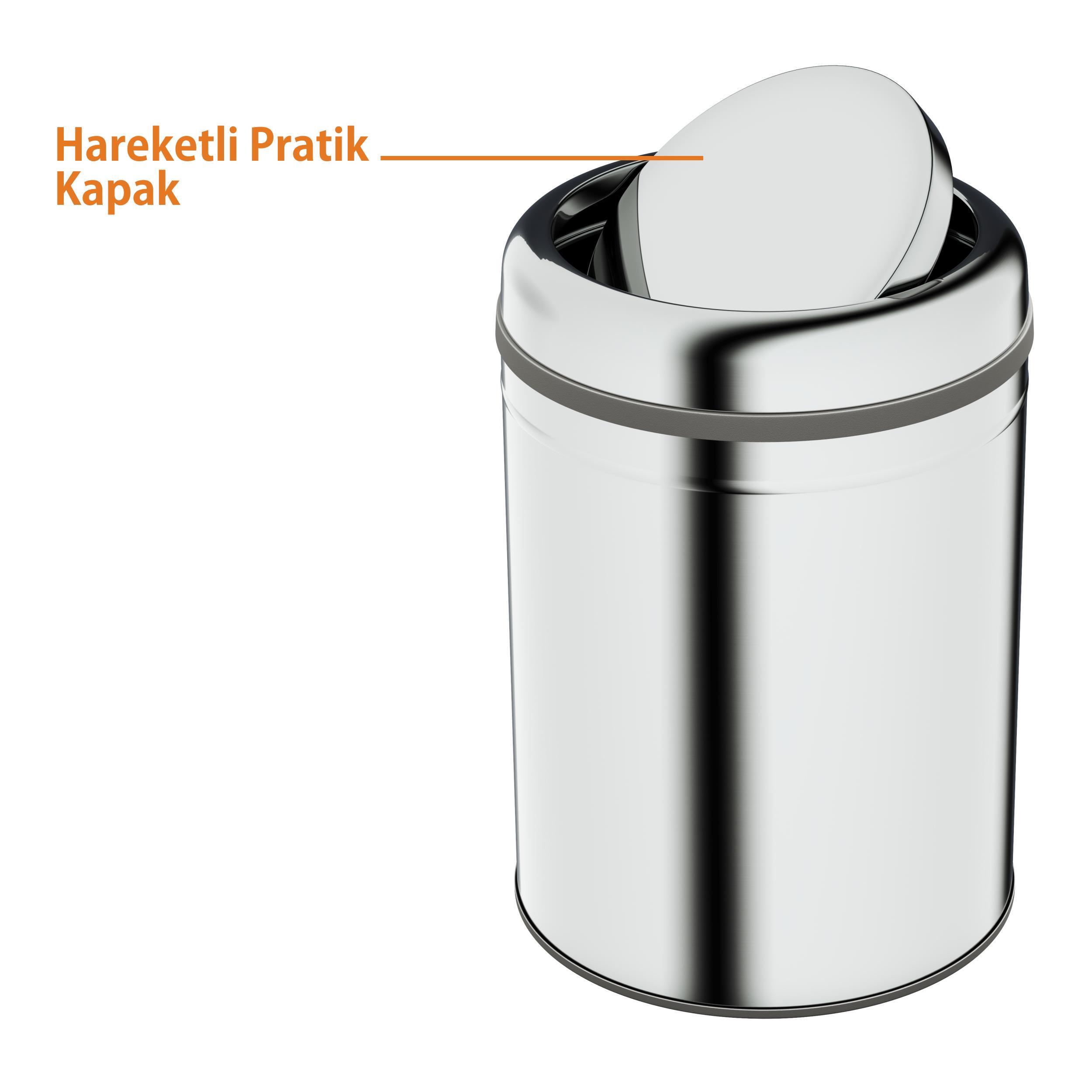 Mekanizma: Sallanır (swing) kapak – hafif itişle açılır, kendi kendine kapanarak kokuyu içeride tutar