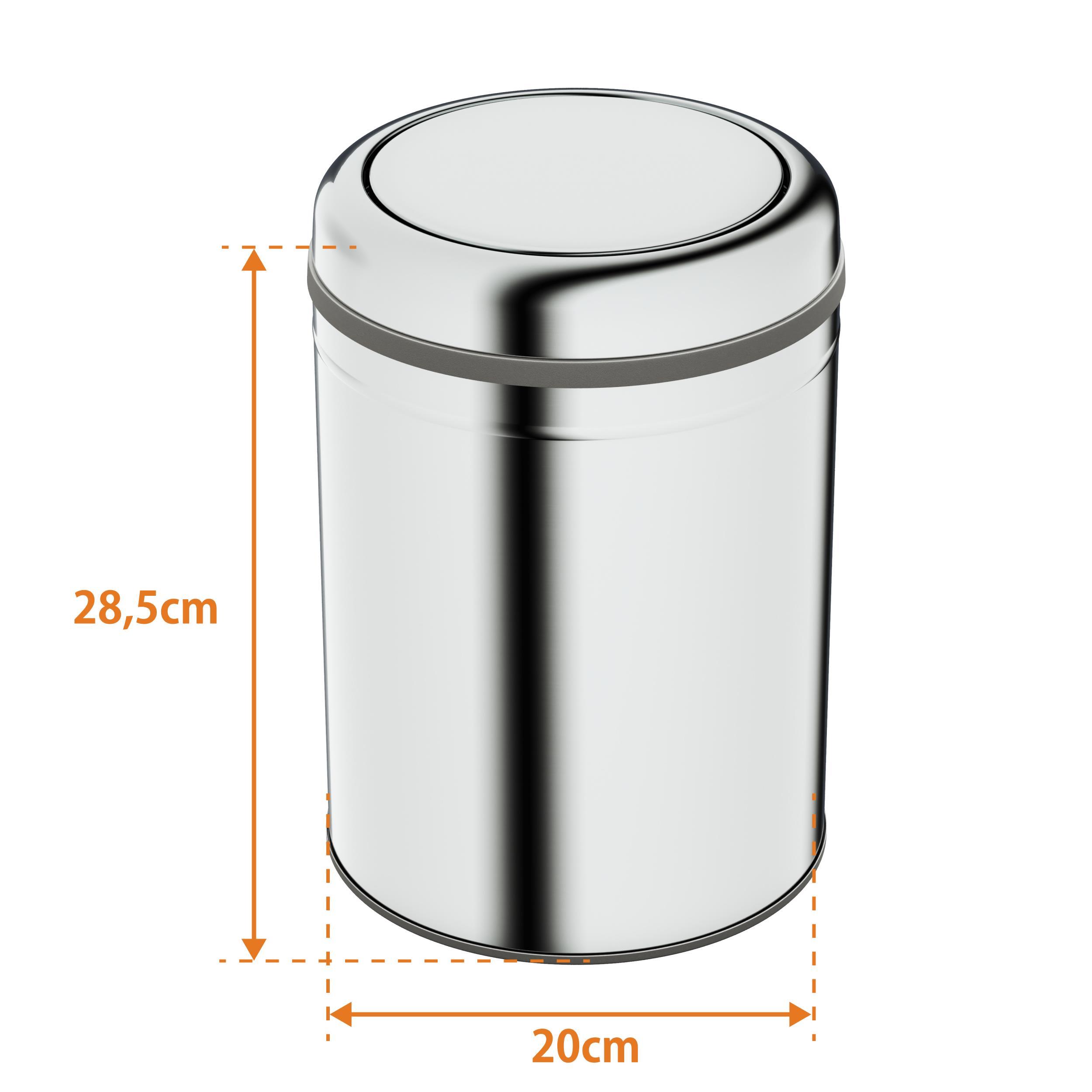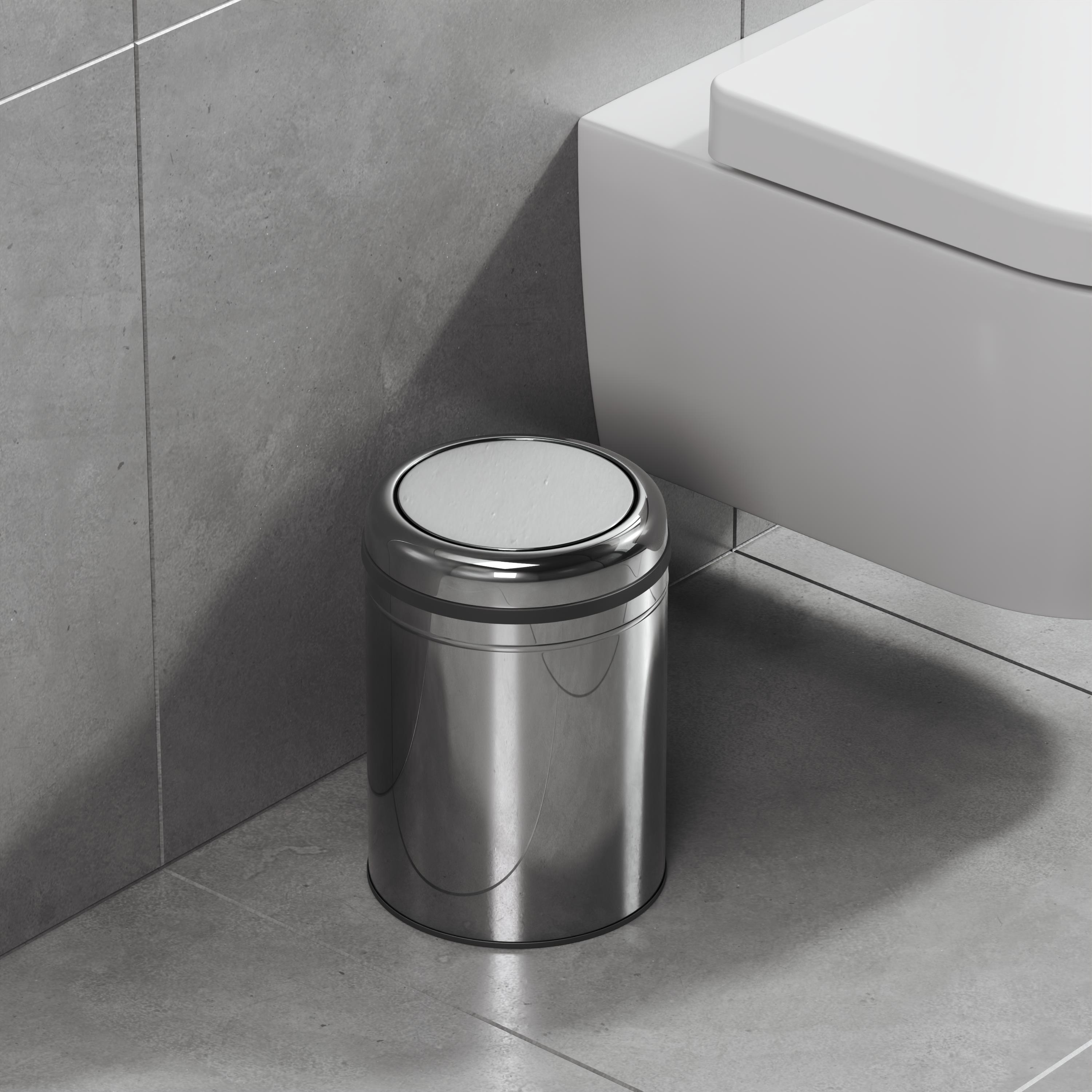 Aqua Bagno Basic Çöp Kovası – Sallanır Kapaklı 8 Litre, Parlak Krom Paslanmaz