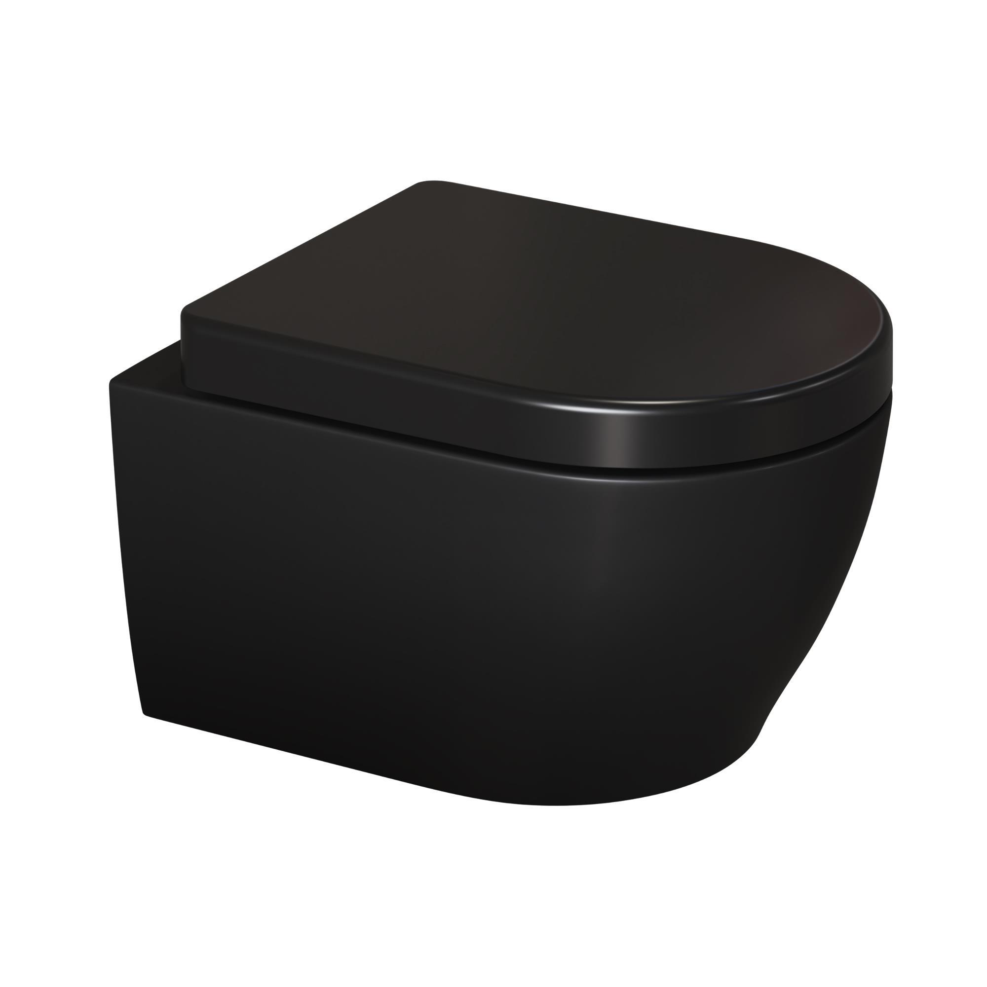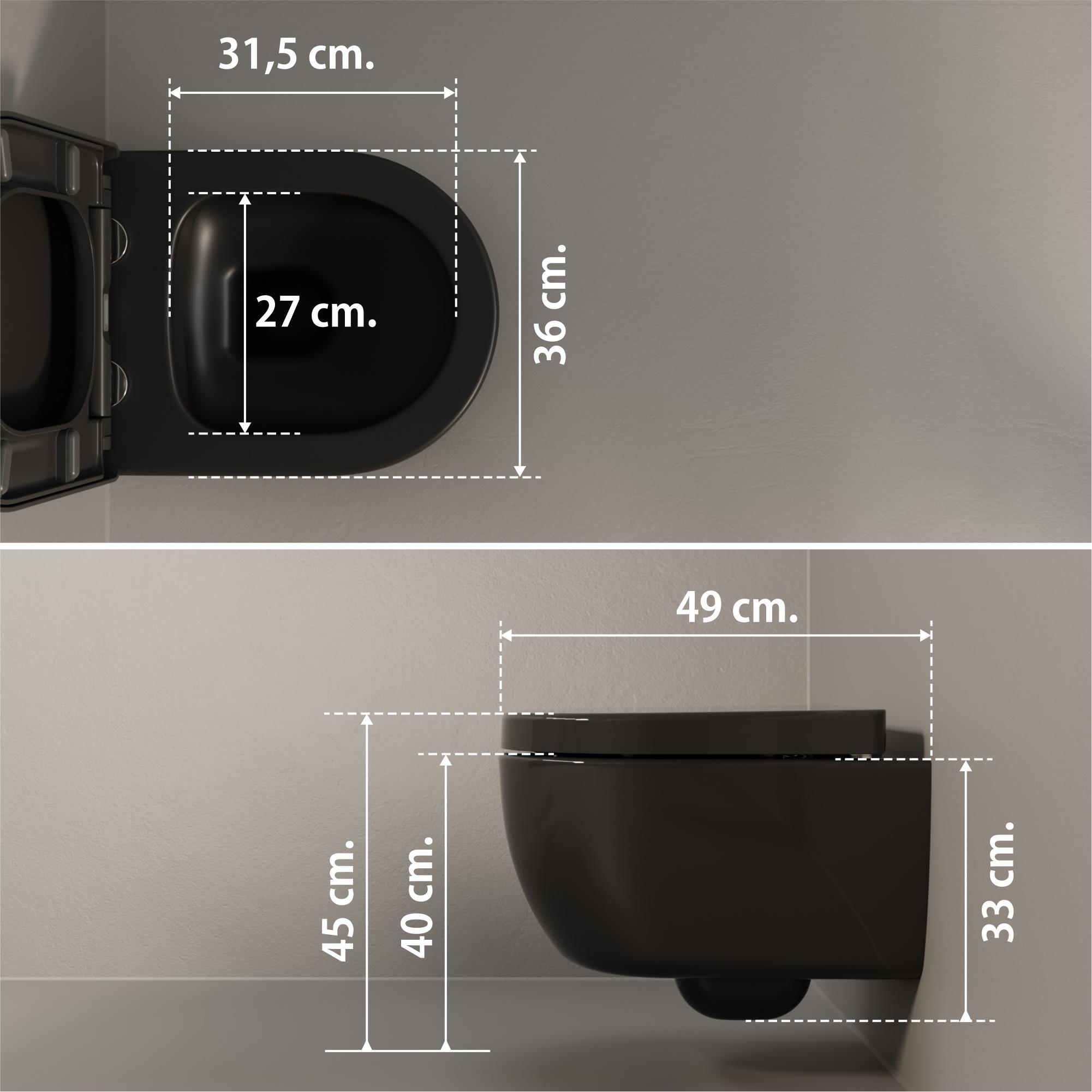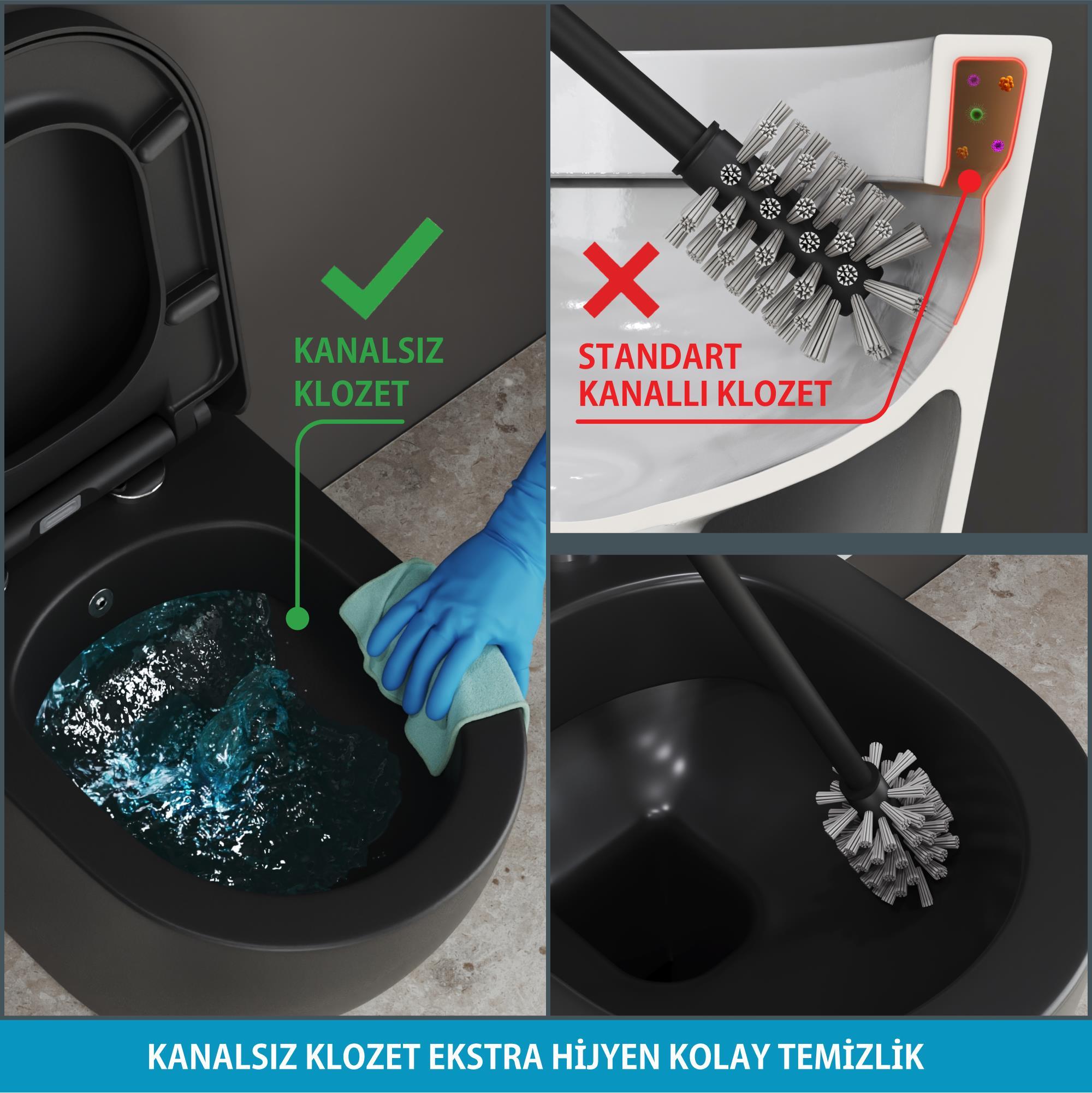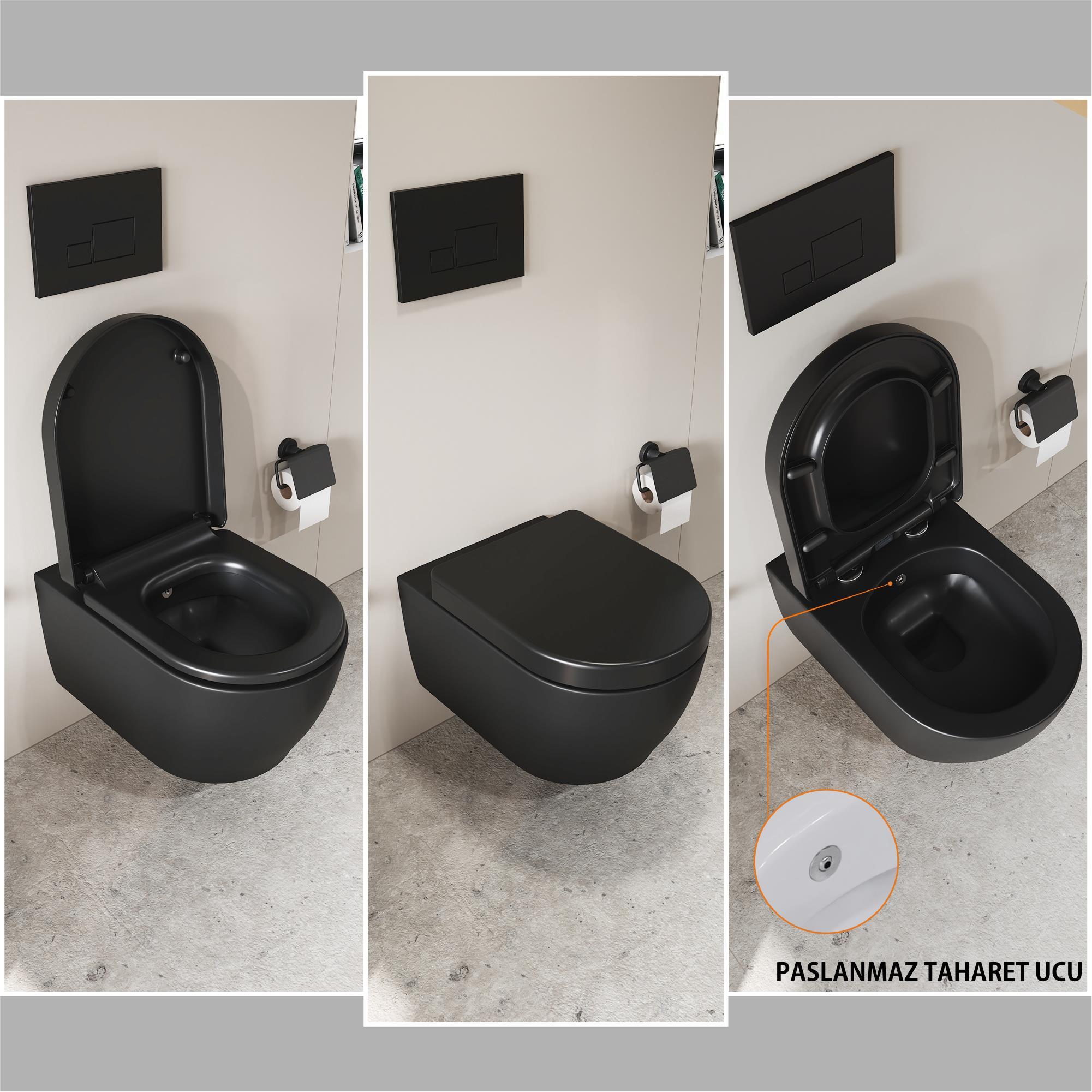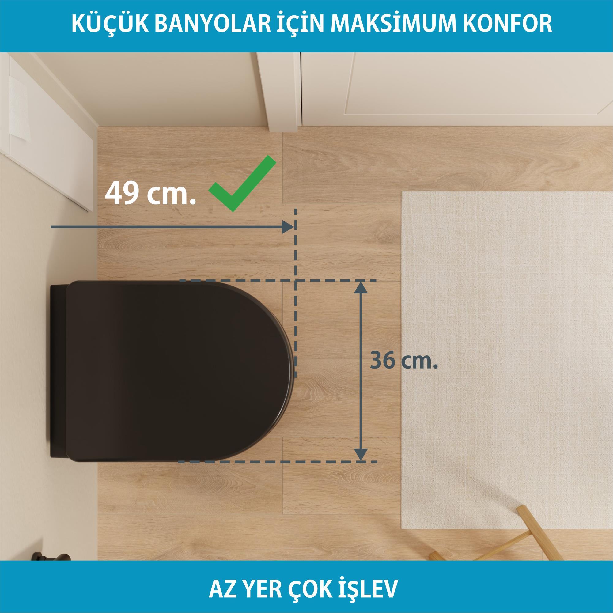 Aqua Bagno Cocon 2.0 Kanalsız Asma Klozet 49 cm – Yavaş Kapanır Kapaklı 2 Parça Set – Mat Siyah