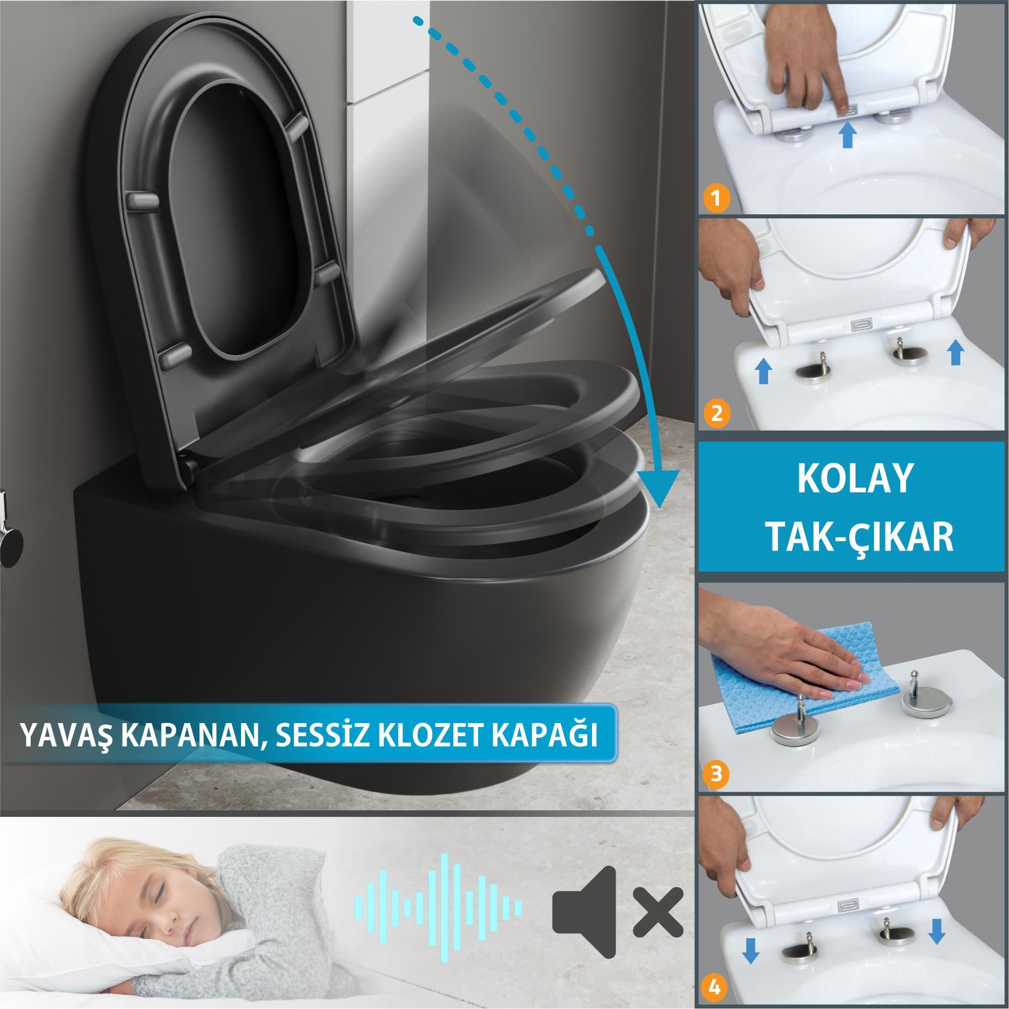 Mekanizma / Tasarım: Kanalsız (Rim-free), Yavaş Kapanır Kapak (Soft-close), Tak-Çıkar Kapak