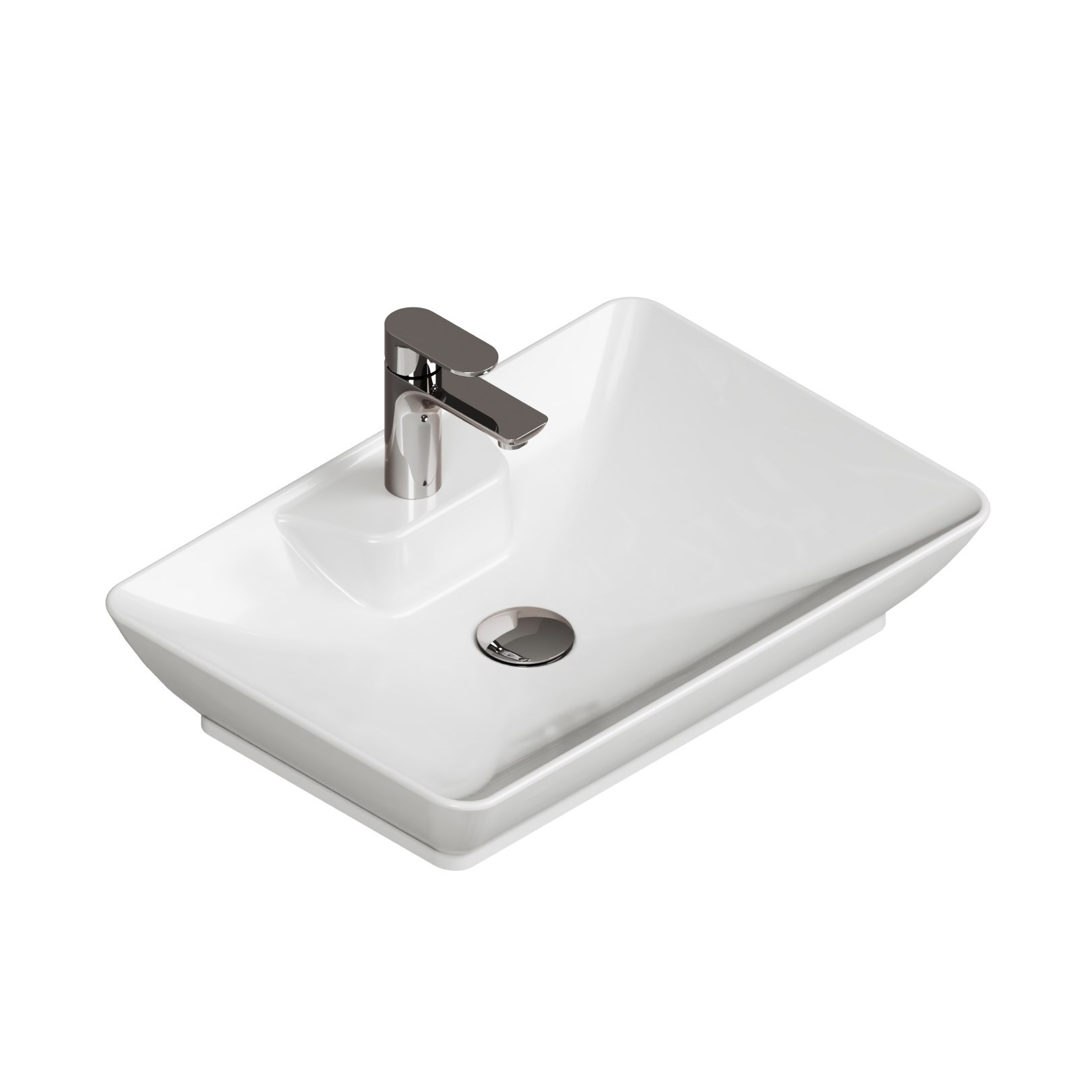 Aqua Bagno Leon Tezgah Üstü Lavabo Batarya Delikli 60x40 cm Beyaz