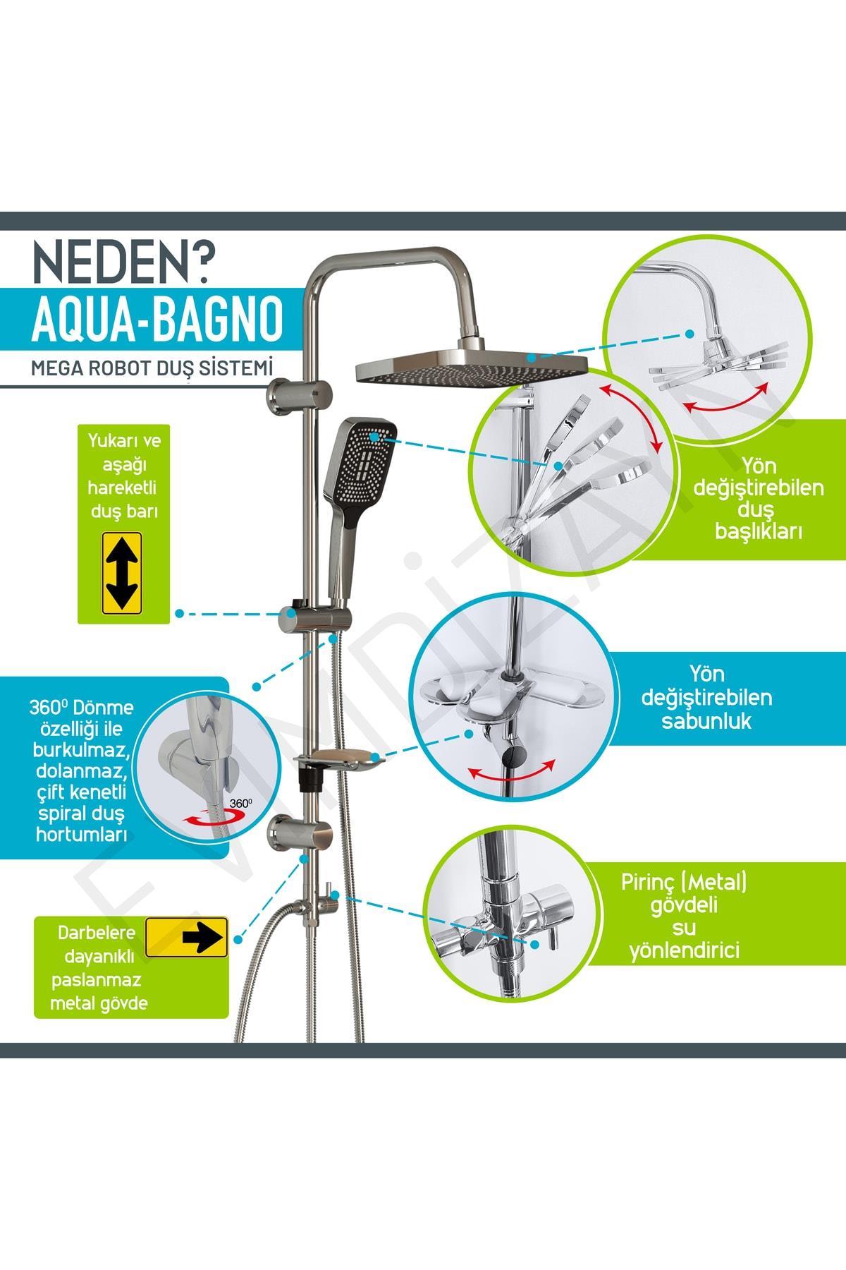 Aqua Bagno Mega robot tepe duşu seti Banyonuzda güvenle ve uzun yıllar kullanabileceğiniz özel tasarlanmış bir üründür.