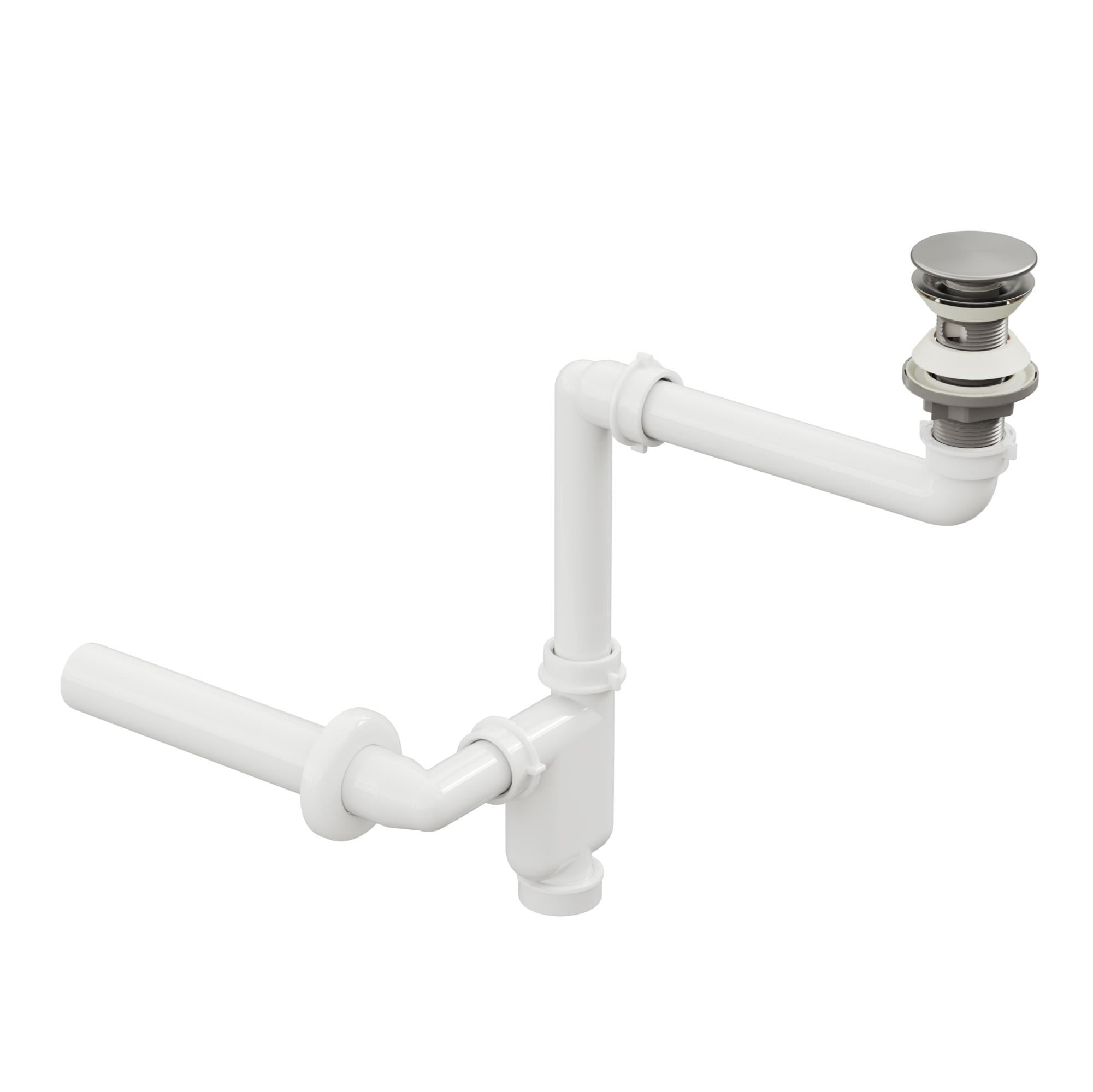 90.99.07.01.02 - Aqua Bagno Comfort yer kazandıran lavabo sifonu + Smart Pop-up Sifonu , Taşma Delikli, Krom -2 Parça Set