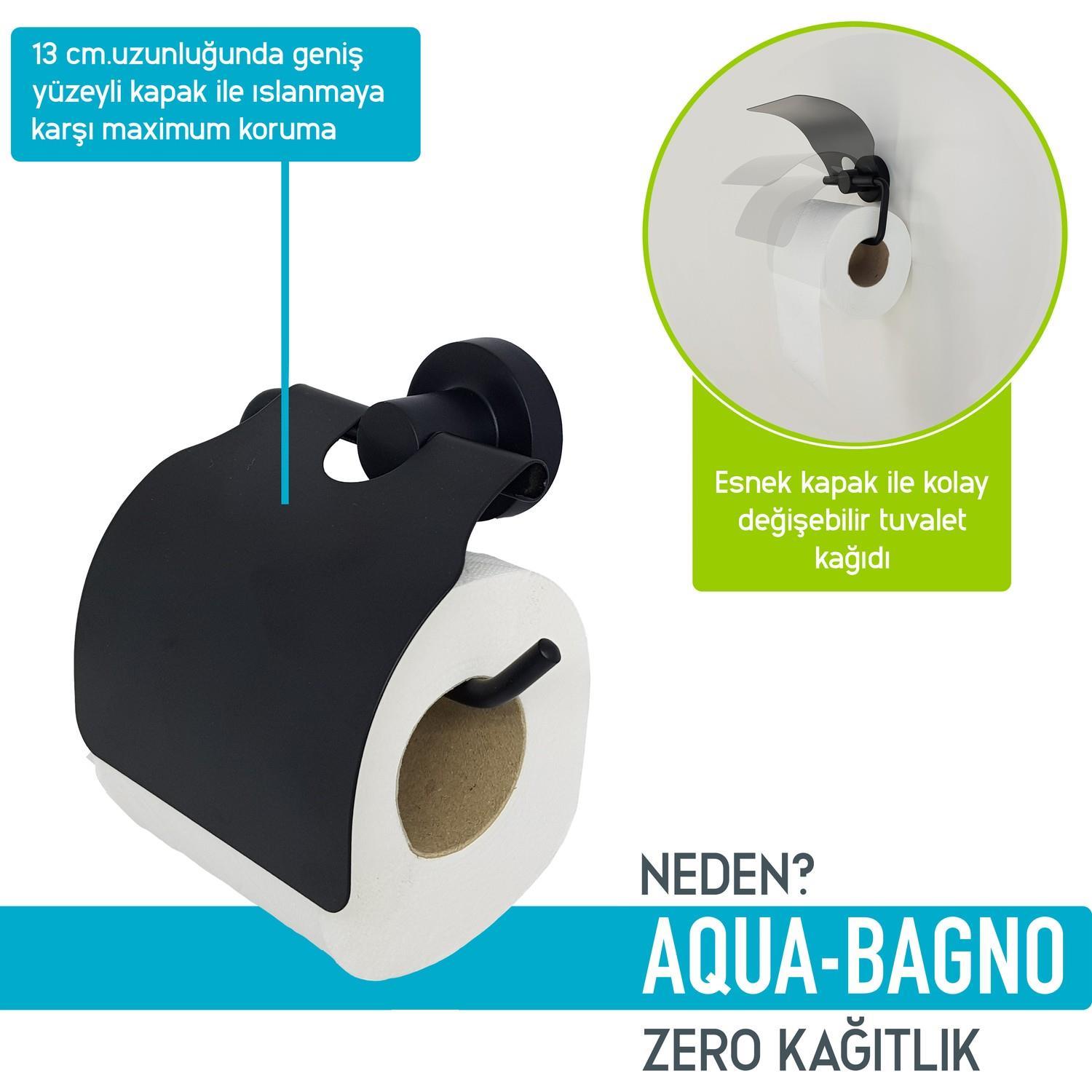 Aqua Bagno Zero Tuvalet Kağıtlığı - Krom Güvenli ve Sağlıklı : Aqua Bagno Zero tuvalet kağıtlığı yüksek kaliteli paslanmaz prinç hammaddesi üzeri Mat siyah renkli olarak üretilmiştir. Güvenle kullanabileceğiniz ,geri dönüşümü olan doğa dostu bir üründür. Ergonomik Tasarım ile Tam Koruma : Zero kağıtlık 13 cm. uzunluğundaki 1mm. kalınlığında yuvarlak formlu kapak ile tuvalet kağıdını tam sarar. Bu şekilde ıslanma ve nemlenmeye karşı tam koruma sağlar. Esnek Kapak : Esnek kapağı sayesinde tuvalet kağıdınızı kolayca değiştirebilirsiniz. Aqua Bagno Banyo aksesuarları kolay kırılmaz ve dayanıklıdır. Güvenle kullanabilirsiniz.1 mm.kalınlığında kağıtlık kapak koruması ve 6 mm. kalınlığında kağıtlık çubuğu sayesinde esnemez ve uzun yıllar güvenle kullanabilirsiniz. Kolay Montaj : Tüm Montaj aparatları dahil olarak satılır.Ürün ile beraber resimli montaj kılavuzu gönderilmektedir. Zero tuvalet kağıtlığı güçlendirilmiş montaj aparatı ve vidalarina sahiptir. Montajdan sonra tuvalet kağıtlığınızı gevşemeden uzun yıllar kullanabilirsiniz.