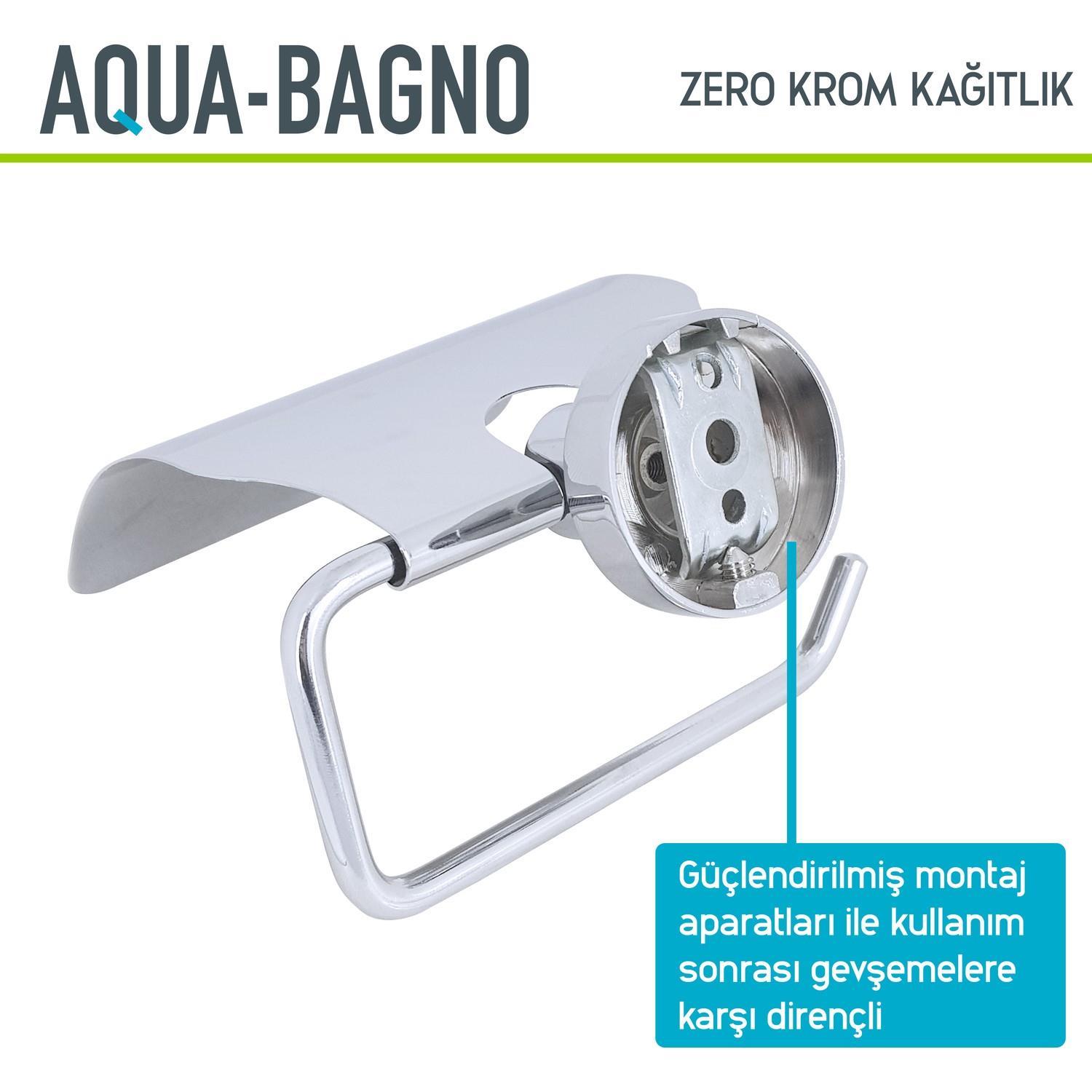 Aqua Bagno Zero Tuvalet Kağıtlığı - Krom Güvenli ve Sağlıklı : Aqua Bagno Zero tuvalet kağıtlığı yüksek kaliteli paslanmaz prinç hammaddesi üzeri krom kaplı olarak üretilmiştir. Güvenle kullanabileceğiniz ,geri dönüşümü olan doğa dostu bir üründür. Ergonomik Tasarım ile Tam Koruma : Zero kağıtlık 13 cm. uzunluğundaki 1mm. kalınlığında yuvarlak formlu kapak ile tuvalet kağıdını tam sarar. Bu şekilde ıslanma ve nemlenmeye karşı tam koruma sağlar. Esnek Kapak : Esnek kapağı sayesinde tuvalet kağıdınızı kolayca değiştirebilirsiniz. Aqua Bagno Banyo aksesuarları kolay kırılmaz ve dayanıklıdır. Güvenle kullanabilirsiniz.1 mm.kalınlığında kağıtlık kapak koruması ve 6 mm. kalınlığında kağıtlık çubuğu sayesinde esnemez ve uzun yıllar güvenle kullanabilirsiniz. Kolay Montaj : Tüm Montaj aparatları dahil olarak satılır.Ürün ile beraber resimli montaj kılavuzu gönderilmektedir. Zero tuvalet kağıtlığı güçlendirilmiş montaj aparatı ve vidalarina sahiptir. Montajdan sonra tuvalet kağıtlığınızı gevşemeden uzun yıllar kullanabilirsiniz.