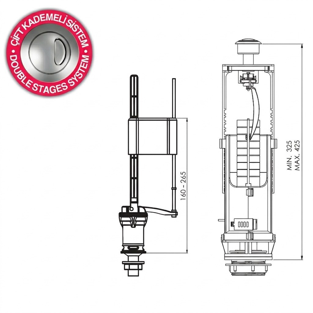Ürün çift basma butonludur. Bu sayede su tasarrufu sağlayarak hem bütçenize katkıda bulunur hem de daha az su tüketimi ile doğayı korumaya yardımcı olur.