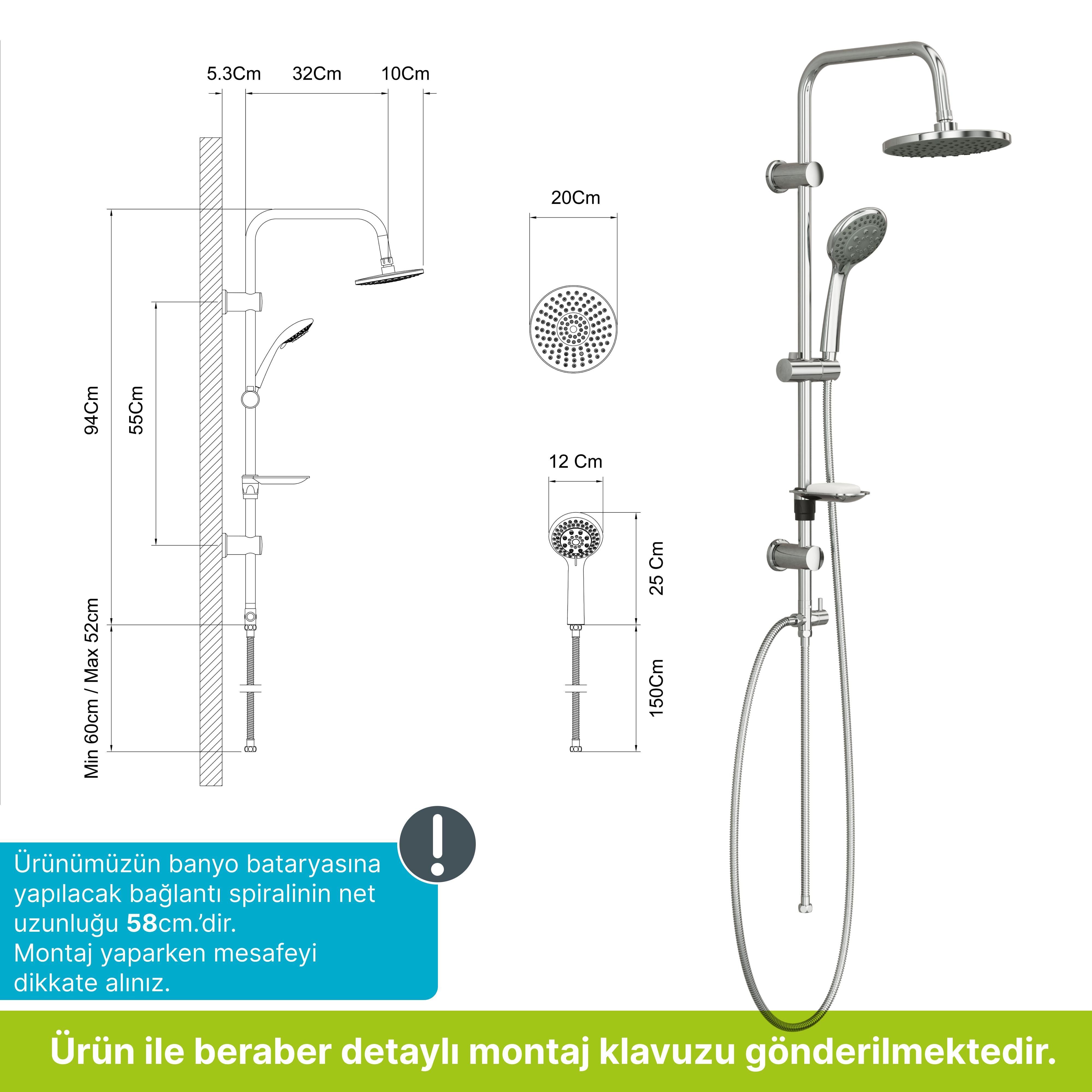 Aqua Bagno Spiring Basic robot tepe duşu seti Banyonuzda güvenle ve uzun yıllar kullanabileceğiniz özel tasarlanmış bir üründür.