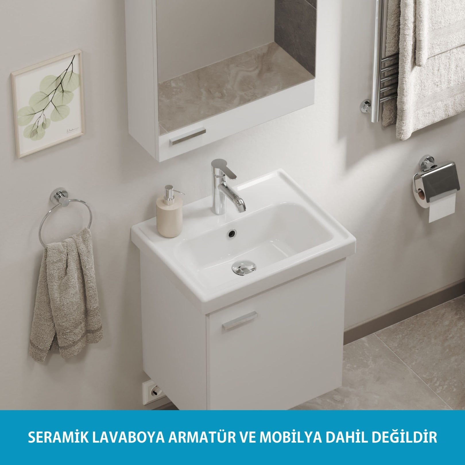 DİKKAT: Lavabomuz ancak bu lavabo için üretilmiş dolaplara uyum sağlar. Mevcutta bulunan Banyo dolabı için uyum sağlamaz.