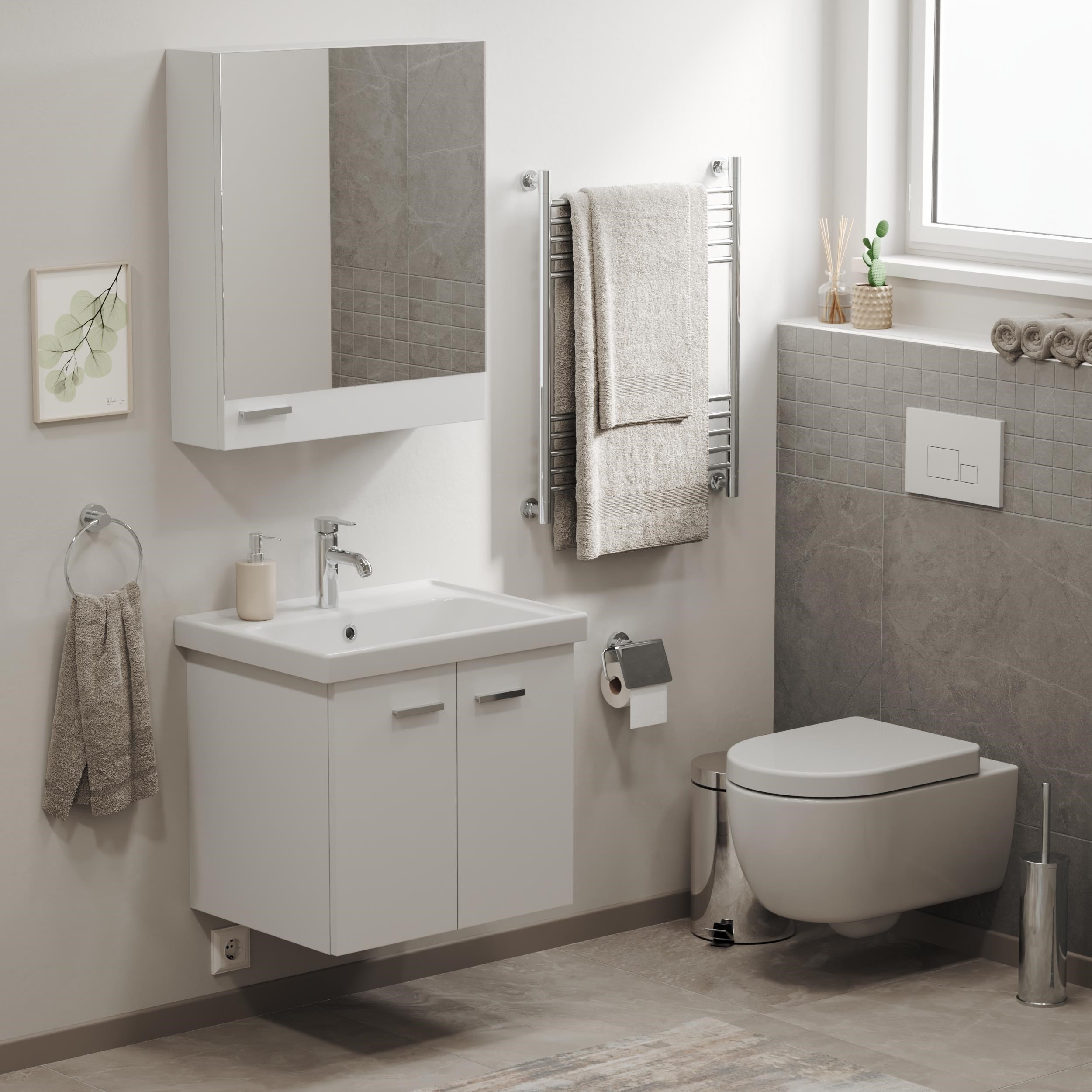 Ürün banyo dolap uyumlu olup , tek başına da duvara montaj yapılabilir.