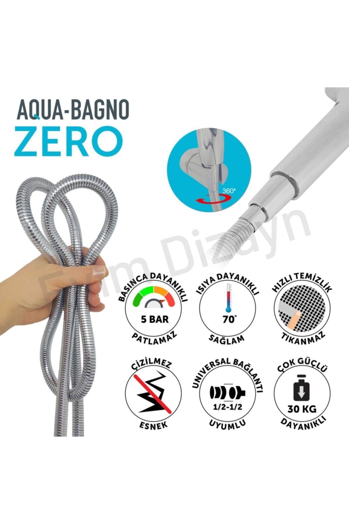 Aqua Banyo Zero El Duşu Seti 2 parçadan oluşur. Banyonuzda güvenle ve uzun yıllar kullanabileceğiniz özel tasarlanmış bir üründür. Duş başlığı ve 150 cm spiral hortum olmak üzere 2 parçadır. Aqua Bagno Zero duş başlıkları ve hortumu Türkiye'de üretilip ihraç edilmek üzere Avrupa kalite standartlarına göre üretilmiştir. Piyasada çok sayıda bulunan ucuz ama kalite standardı düşük ürünlere göre birçok üstünlüğü vardır.